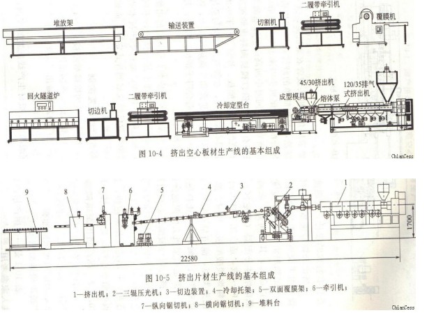 擠出機的輔助設備有物料的前處理設備(如物料輸送與干燥)、耐力板處理設備(定型、冷卻、牽引、切料或輥卷)和生產條件控制設備等三大類。